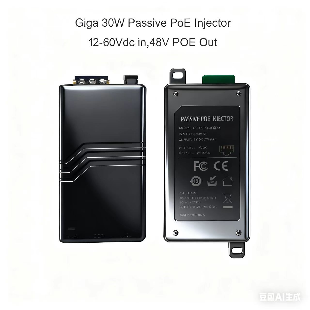 1000M アクティブ/パッシブ POE インジェクター 24W、12-48Vdc 3P 入力