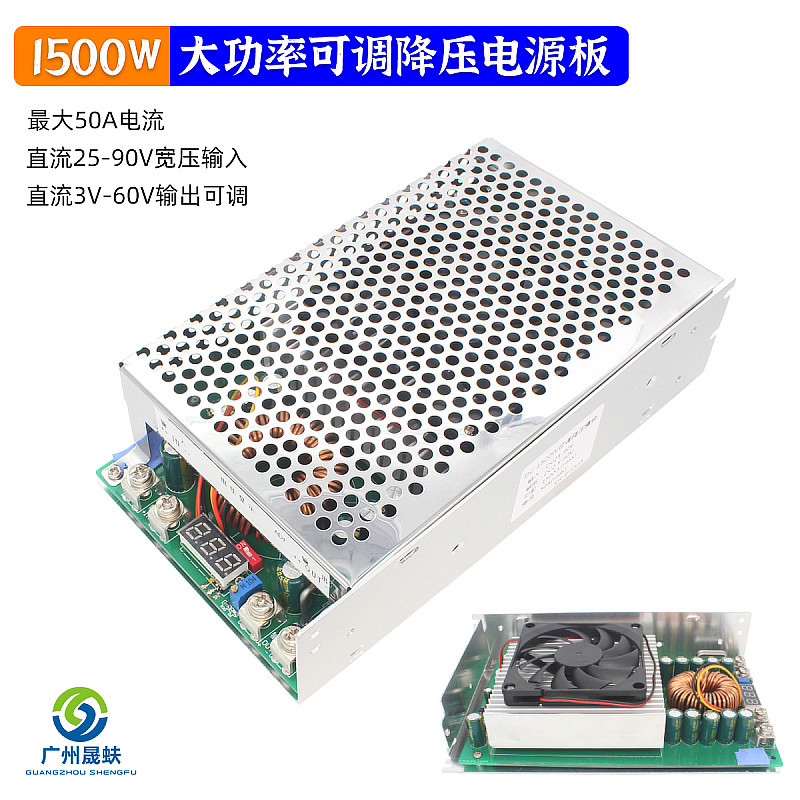 1500wハイパワー降圧電源ボード50a 25v-90v 72v回転3v-60v調整可能電圧計付きアルミケース