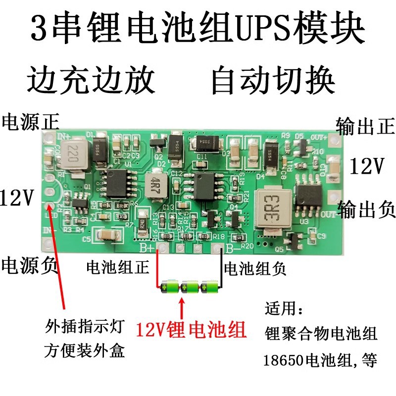 12V3A24W36 ワットハイパワー無停電電源ボード 3 シリーズリチウム電池充電と放電 18650 グループ