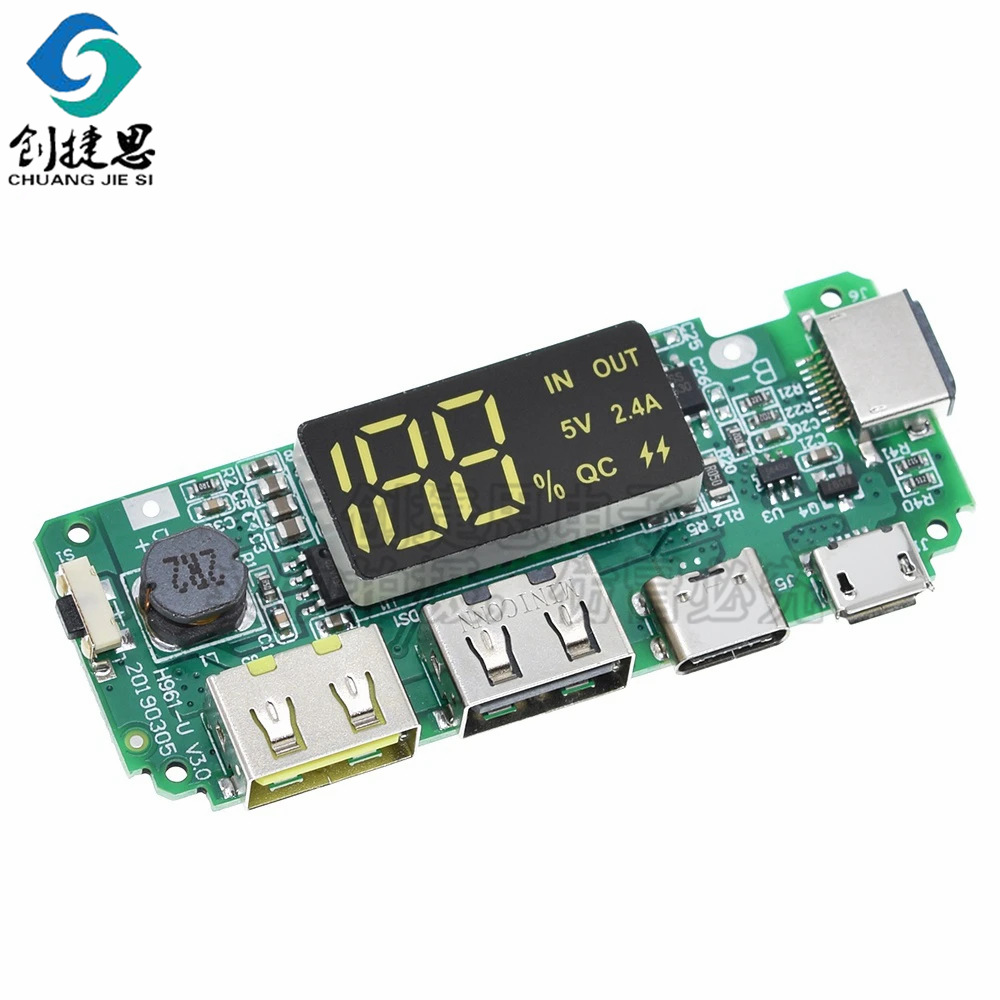 18650リチウム電池デジタル充電モジュール5v 2a 4a 2a 1aダブルUSB出力帯表示昇圧モジュール