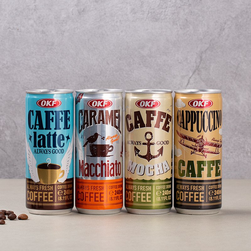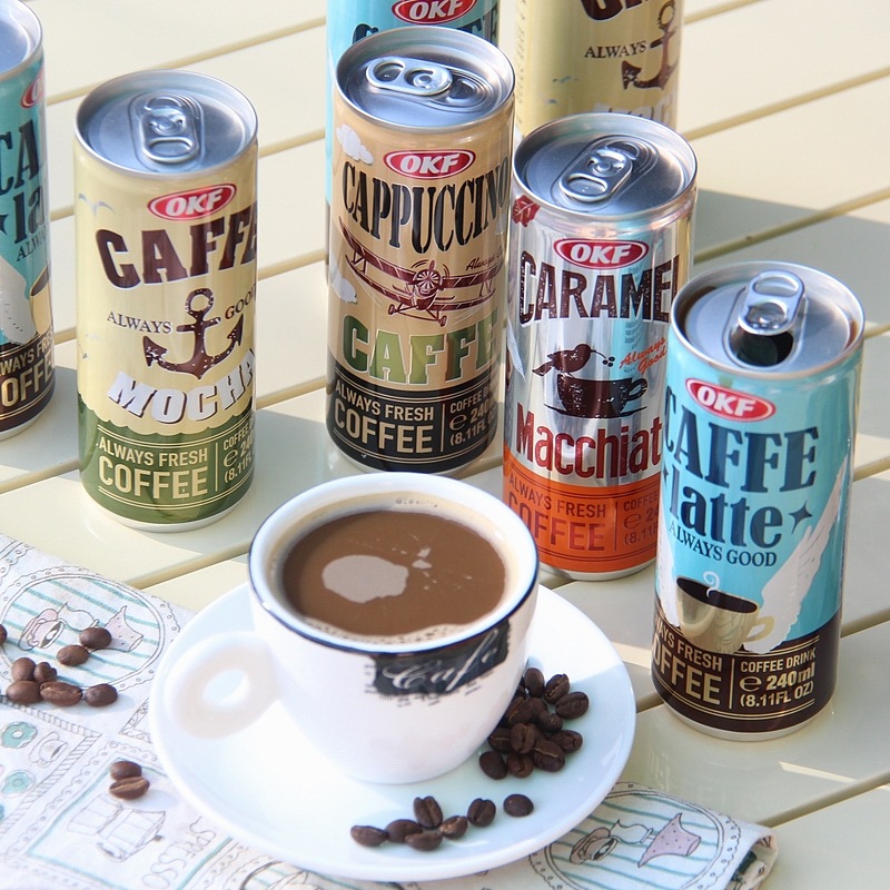 韓国輸入OKFラテコーヒーモカカプチーノキャラメルマキアートインスタントコーヒー缶240ml