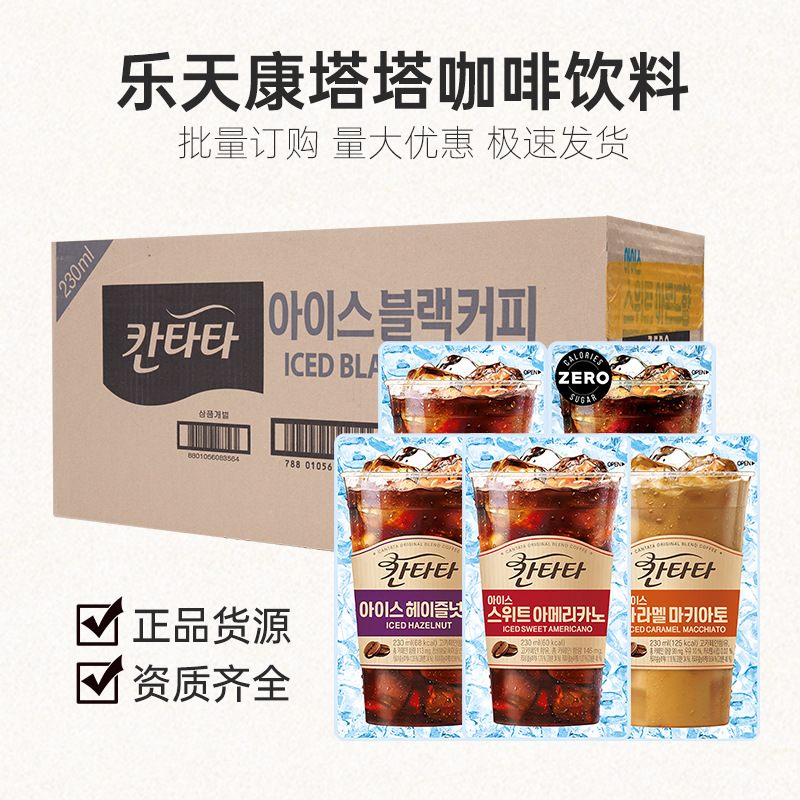韓国輸入ロッテカンタータアメリカンヘーゼルナッツラテブラックコーヒードリンクバッグフルボックス卸売