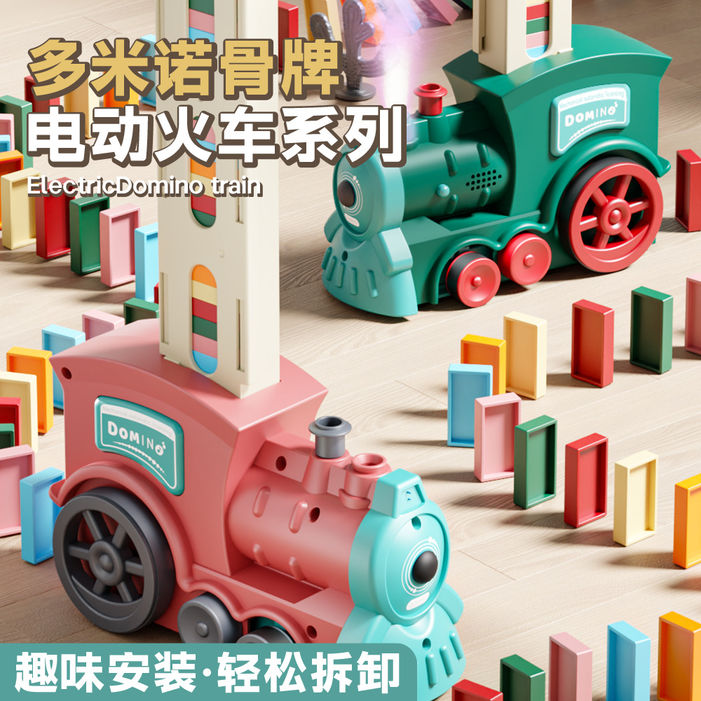 新しいドミノ列車 DIY 自動配信電気おもちゃ子供の早期教育パズルビルディングブロックおもちゃ