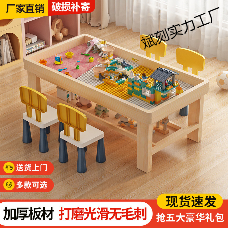 木製の積み木のテーブルの子供の多機能のテーブルの積み木はおもちゃのテーブルを組み立てて学習します。
