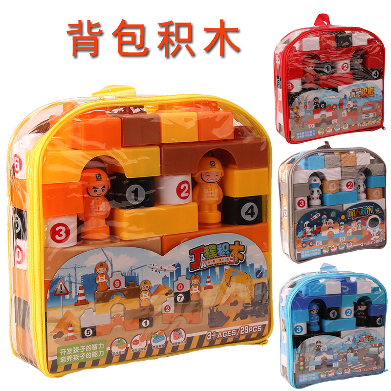 大粒積み木セット29pcsかばんの積み木工事消防の多くの積み木ブロックのプレゼント卸売り