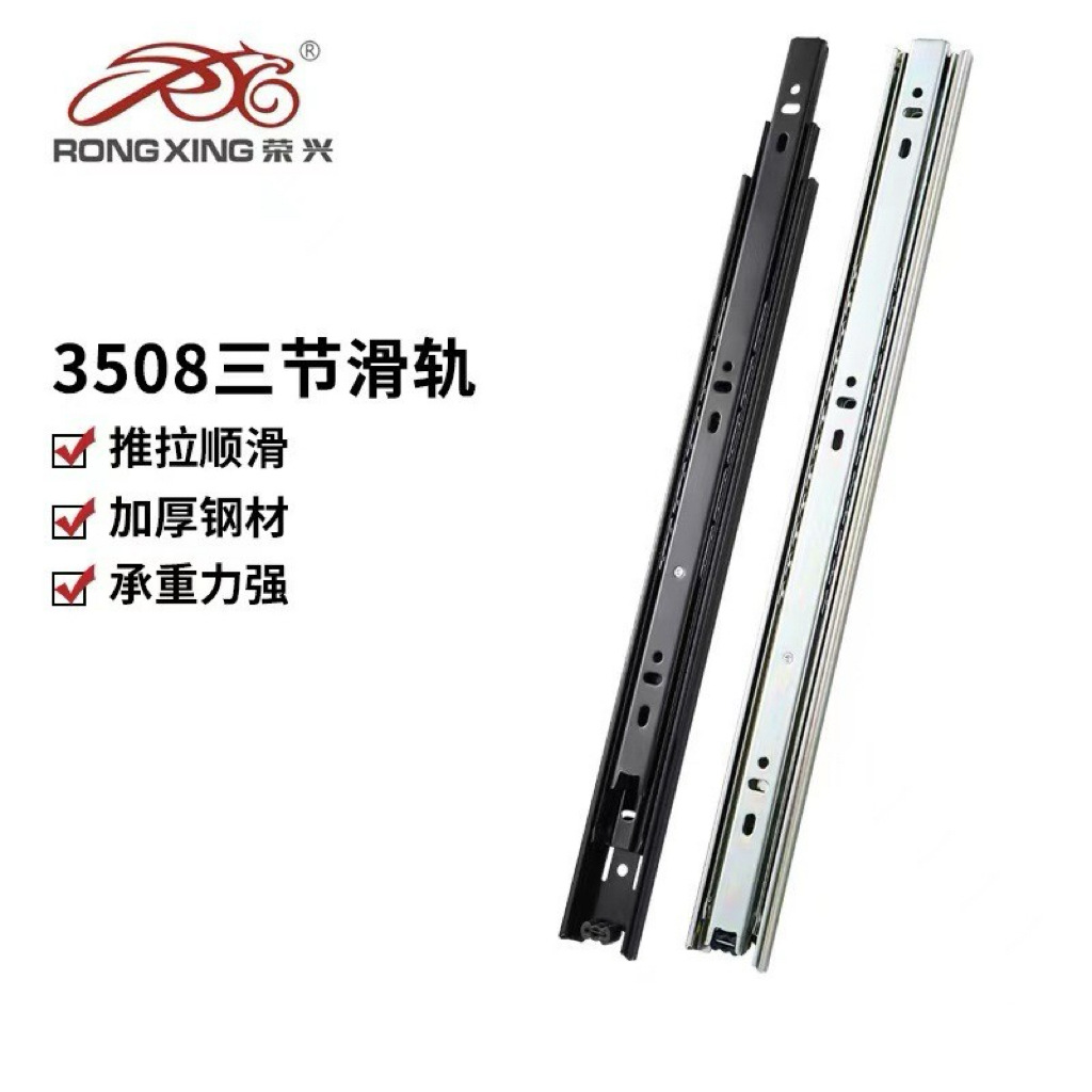 35幅スライドレール静音増厚冷間圧延鋼タンス本棚レール三節スチールボール引き出しレール卸売り