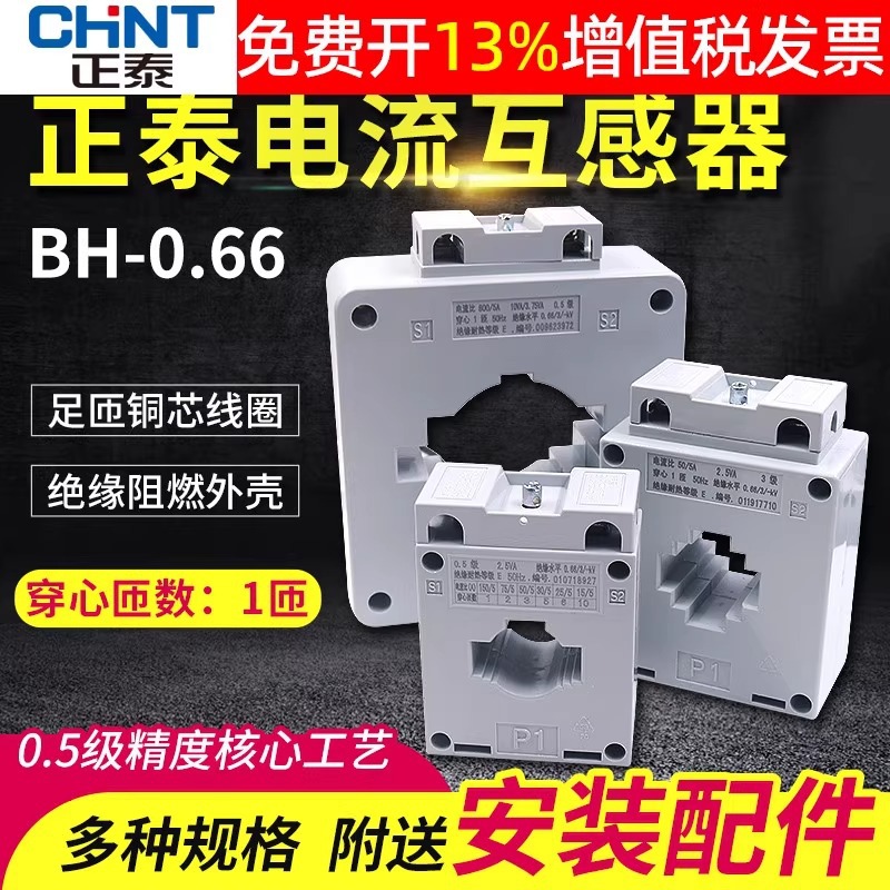 CHNT正泰50芯電力計電気メーター交流電流計箱変流器BH-0.66 500/5三相3