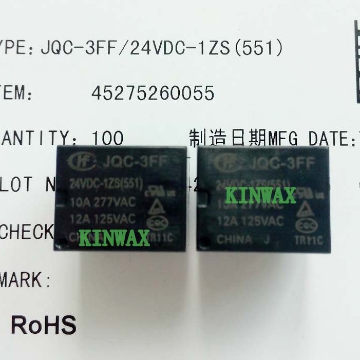 パワーリレーJQC-3FF-24VDC-1ZSHF3FF-024-1ZS(551)10aセット変換