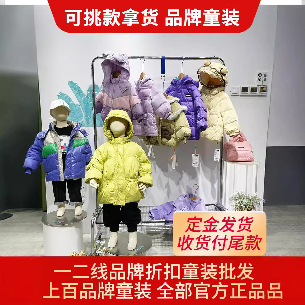 小黄鴨巴巴豆童装ブランド割引卸売りの一手の商品源実体店の露店生中継で商品を受け取る