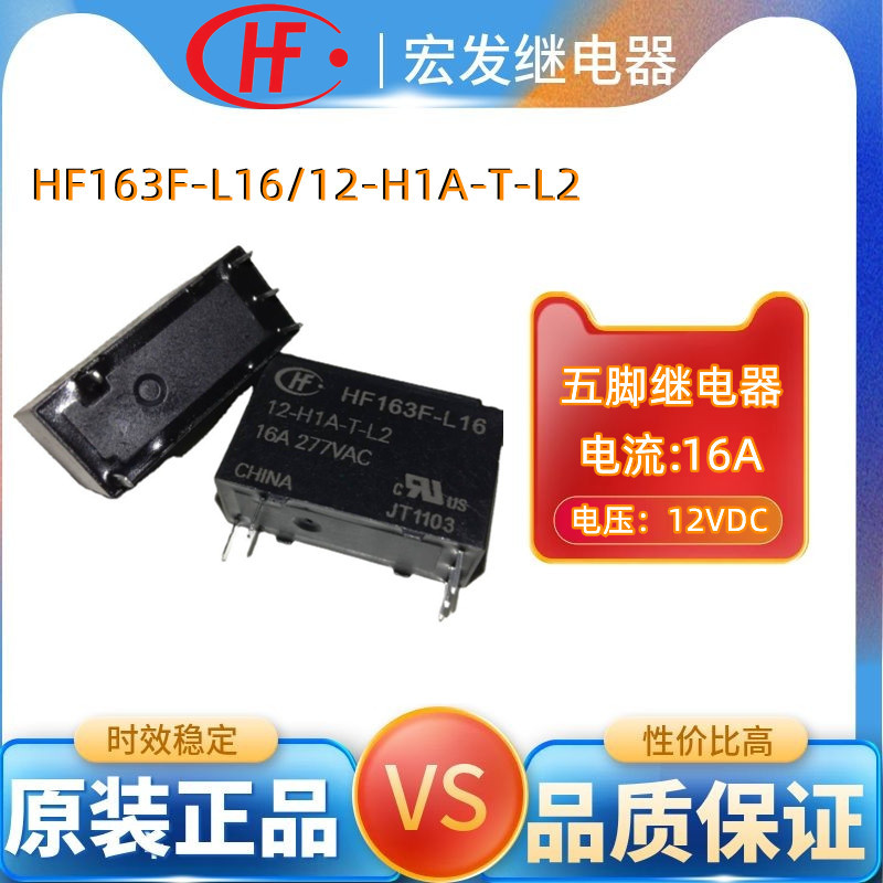 16a宏発hongfaリレーHF163F-L16/12-h 1a-t 2常開五脚12v磁気保持