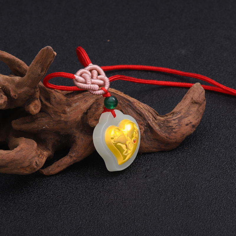 金玉新作和田玉金象嵌百福運転筒ペンダント女性カップル用吊り下げ飾り保険販売ギフト直販