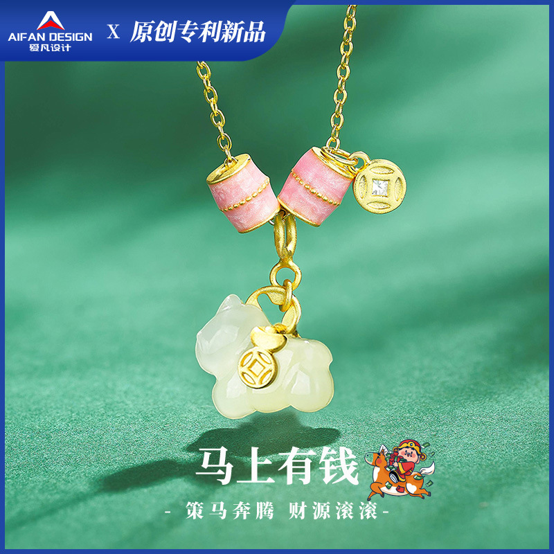 オリジナル新ホータン翡翠ポニーネックレス女性はすぐにお金 s925 スターリングシルバー鎖骨チェーンペンダントジュエリー卸売