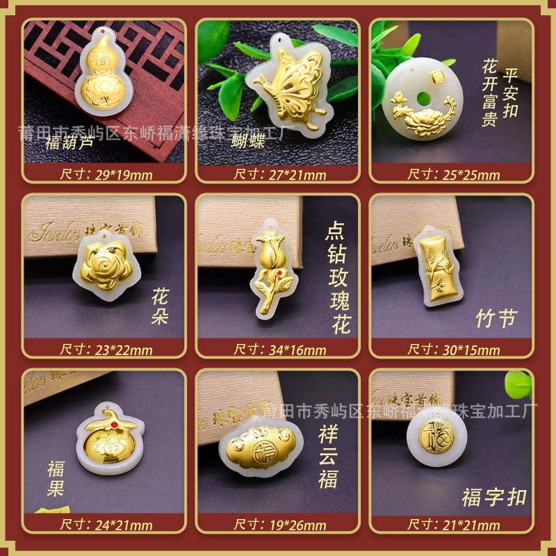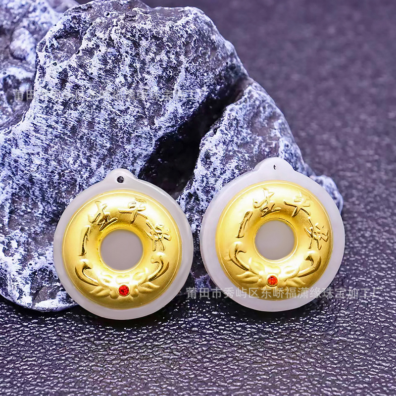 4d厚金白玉帯ドリル平安ボタンペンダント999足金はめと田玉一生平安男女ネックレス卸売り