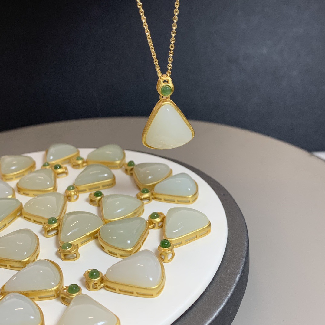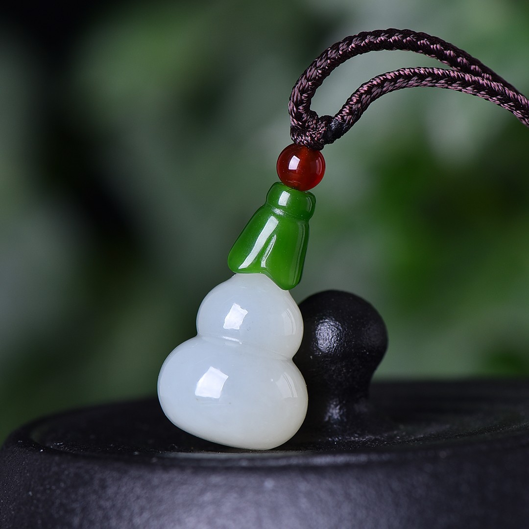翡翠ネックレス、女性用鎖骨アクセサリー、多用途の小さな翡翠、众和田翡翠ペンダントジュエリー、卸売シルバー象嵌ひょうたん型