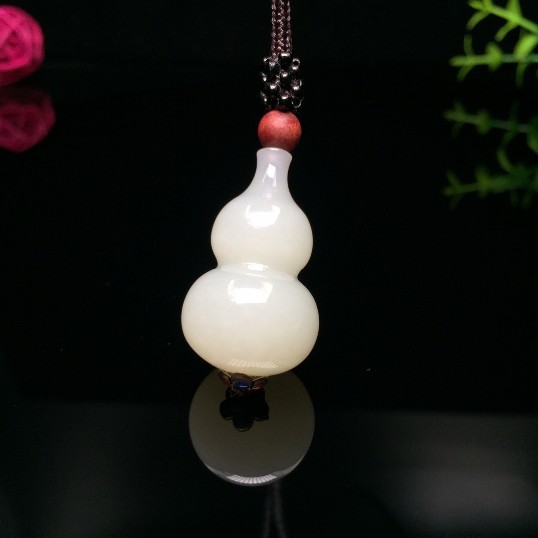 新疆と田玉の経典の宝葫芦玉の立体のペンダントの男女の項の福禄の双喜玉のヒョウタンのペンダントの玉はぶら下がっています。