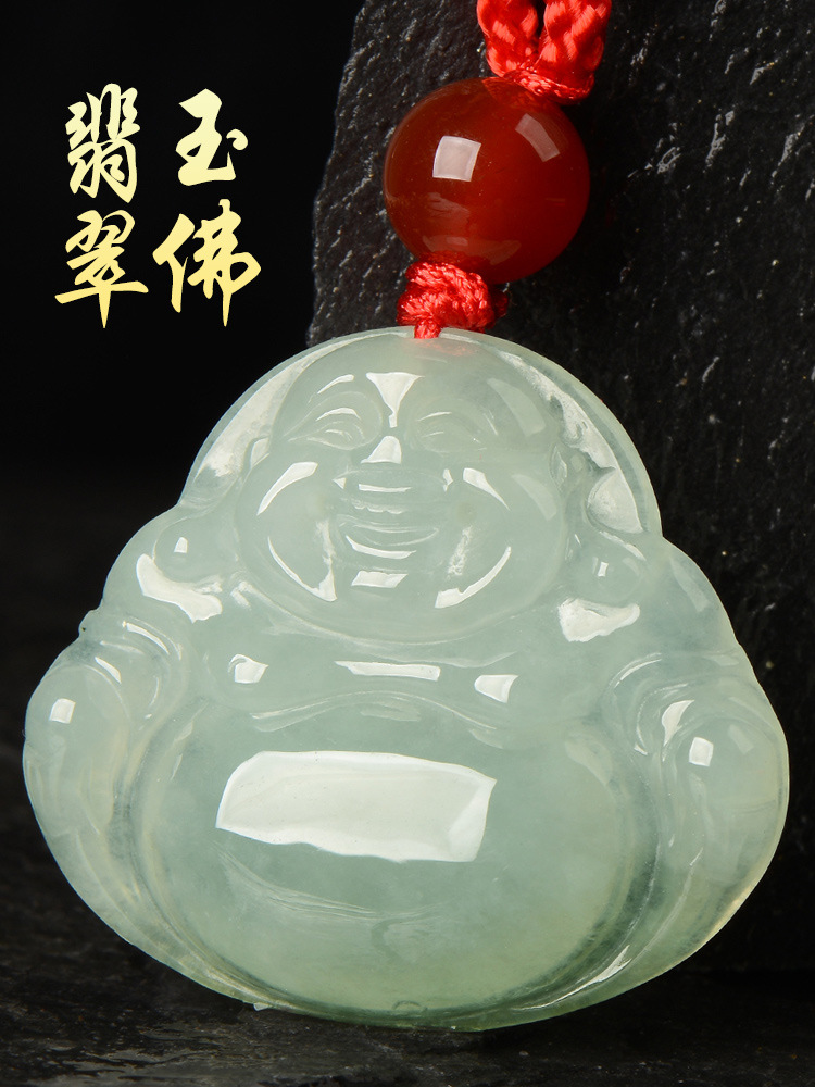 天然ミャンマーA品翡翠仏公ペンダント女性金玉仏笑仏大腹弥勒仏玉ペンダントネックレスペンダント