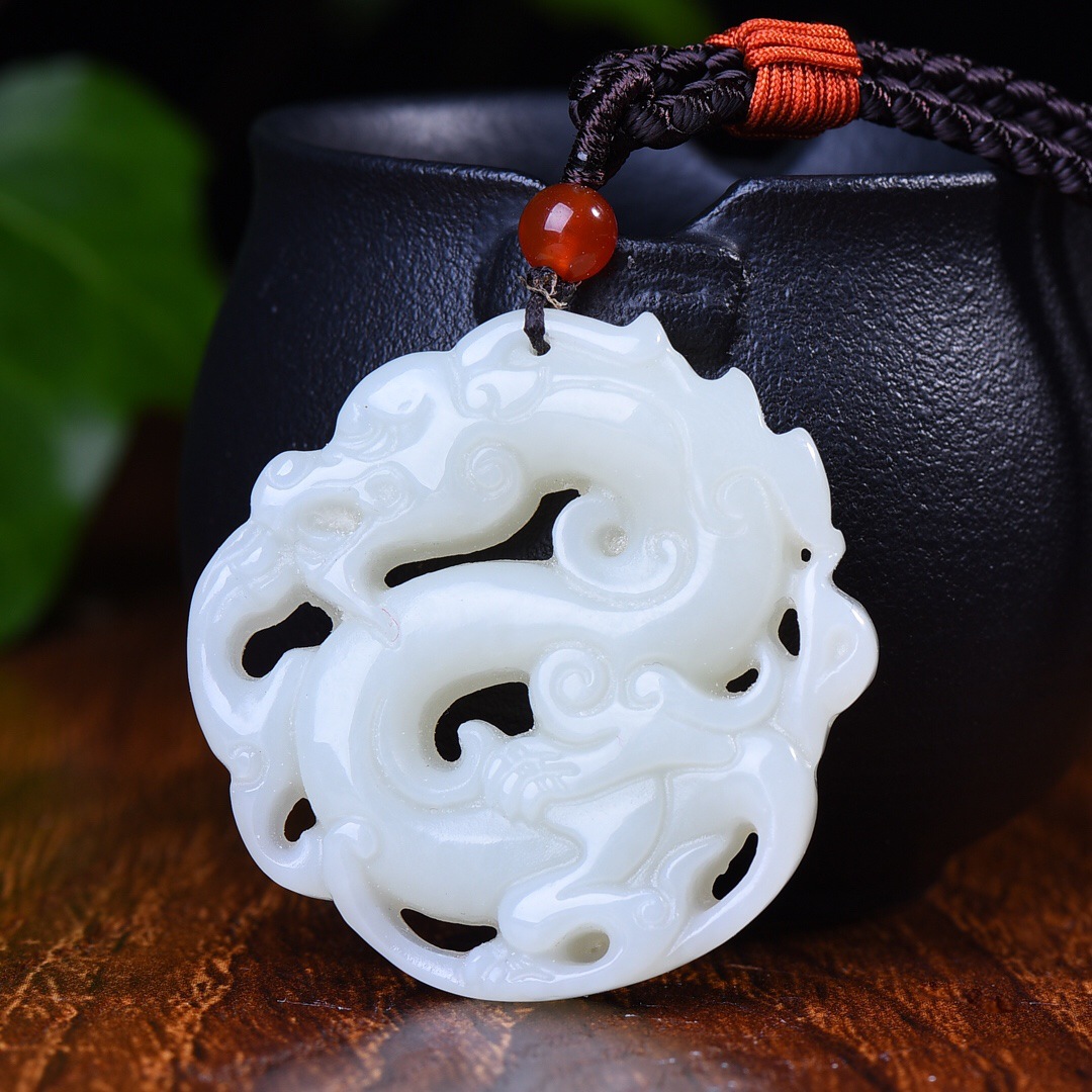 新疆と田玉の透かし彫りの竜玉のペンダント