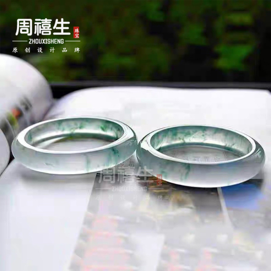 Douyin ホットセール A グレードアイスラウンドバーモノラル翡翠ブレスレットフローティングブルーグリーンフラワー翡翠ブレスレット女性用証明書