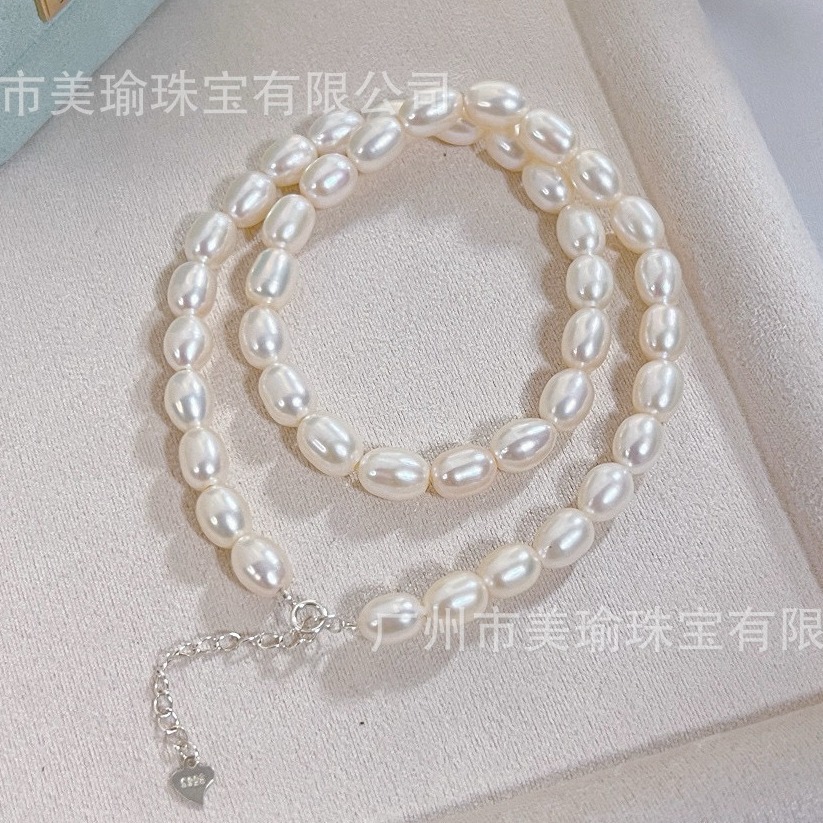 趙露思同金米珠素鎖5mm強光淡水米形淡水真珠ネックレスネックレスS925銀