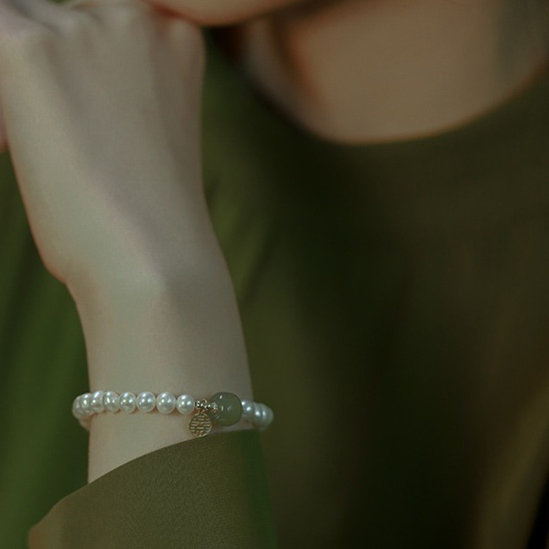 925 スターリングシルバー Hetian 翡翠淡水パールブレスレット女性のための優しいイン気質ニッチデザインハイエンドブレスレット