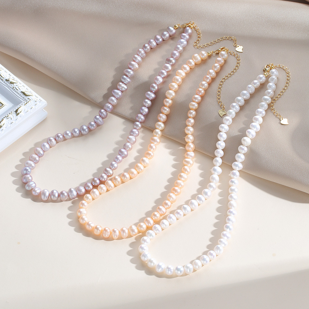 天然淡水パールネックレス レディース S925シルバーパールネックレス 個性的でスタイリッシュな光沢のある微傷あり鎖骨チェーン