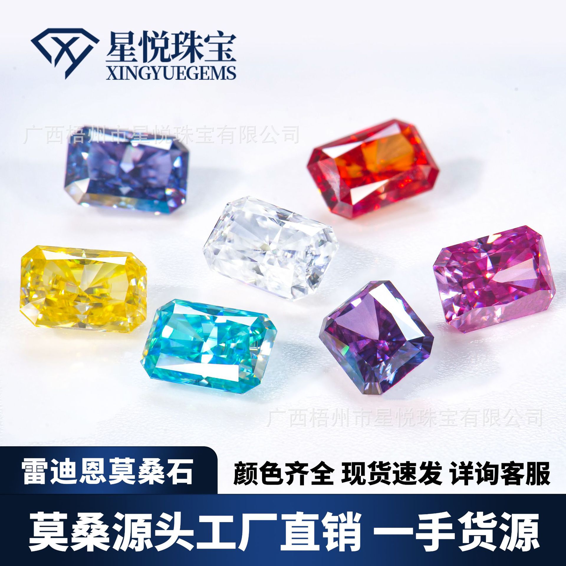 莫桑石カラーラディーン1ct異形長方形面取り海藍莫桑裸石宝石工場現物卸売り