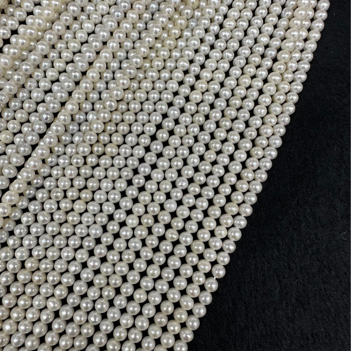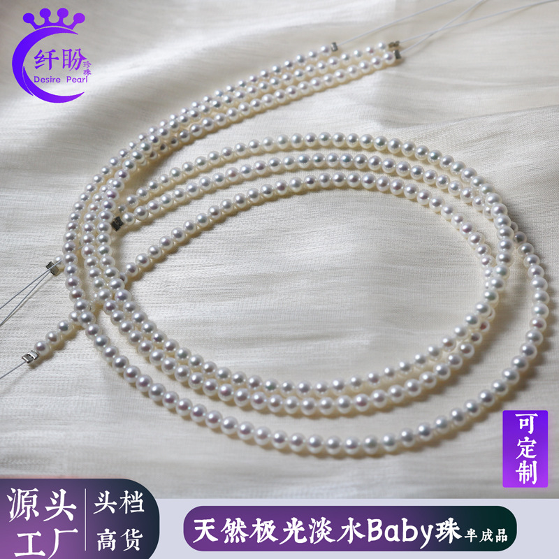 3-4mmのほぼ真円形の天然淡水ベビービーズチェーン、ミレットビーズネックレス、ブレスレット、ジュエリー卸売、波光と水光