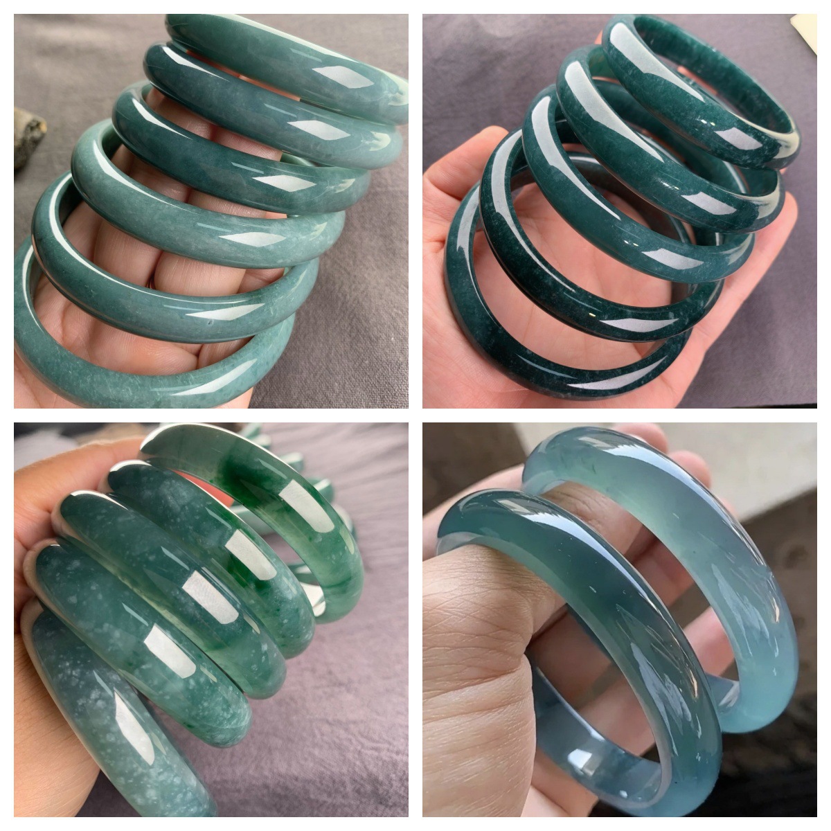 氷のモチモチの種の半山の半分の水の青い翡翠の腕輪の女性のミャンマーの翡翠の処理の漂う緑の正の輪の玉の腕輪の贈り物
