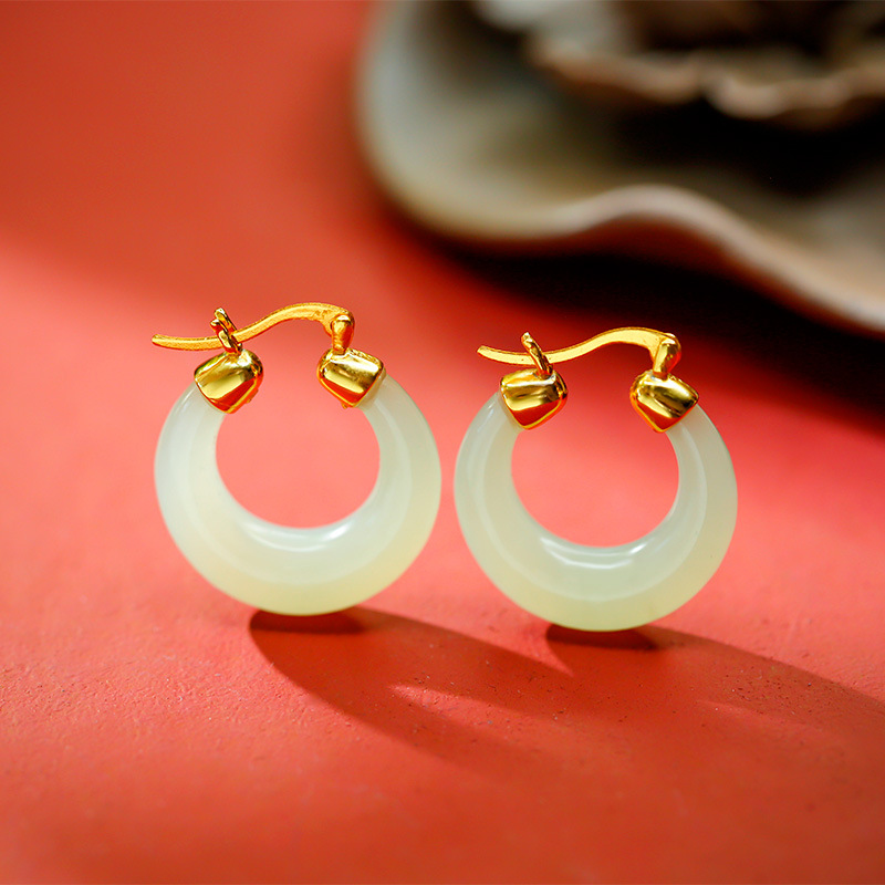 メタ宝麗s925銀金メッキモザイクと田玉三日月弧形幾何学耳ボタンクラシック百合個性女性耳飾り