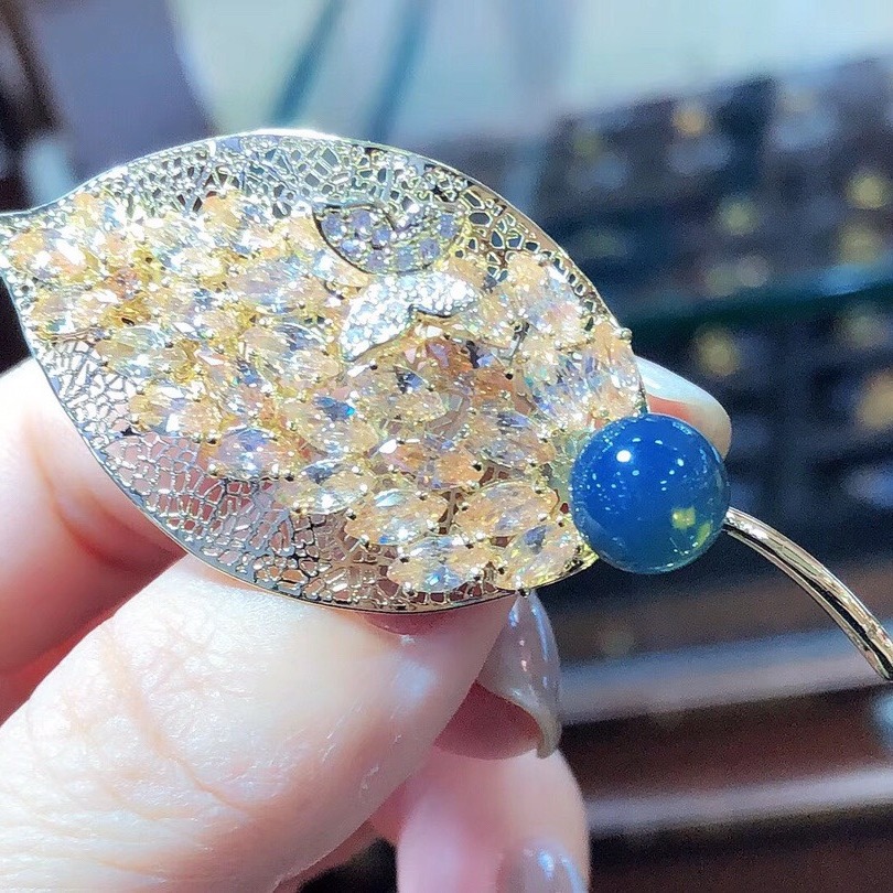 一葉有名9mmメキシコブルーパー精工象眼銅アクセサリーブローチ豪華微満ダイヤモンド蝶デザイン