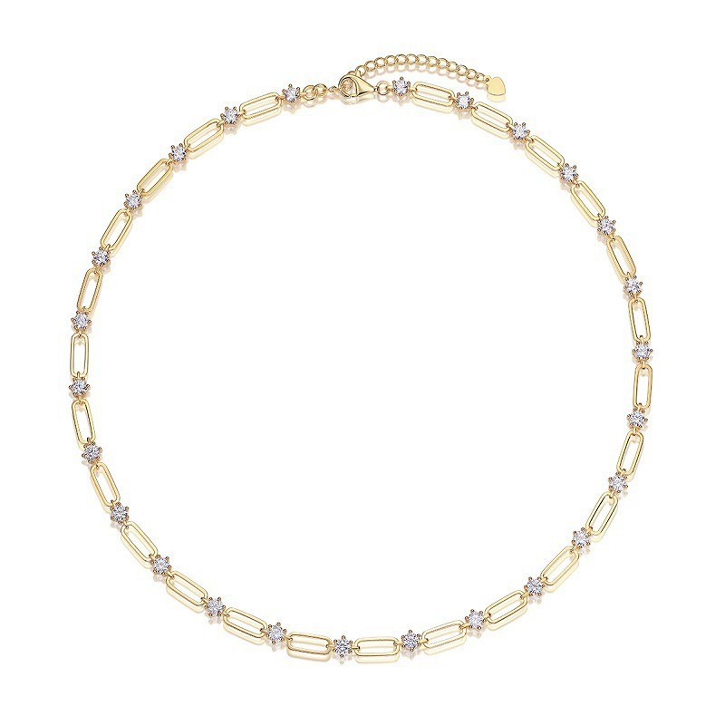 銀飾り2024新型S925純銀欧米国境を越えたins風畳装着金円形ドリル鎖鎖ネックレス
