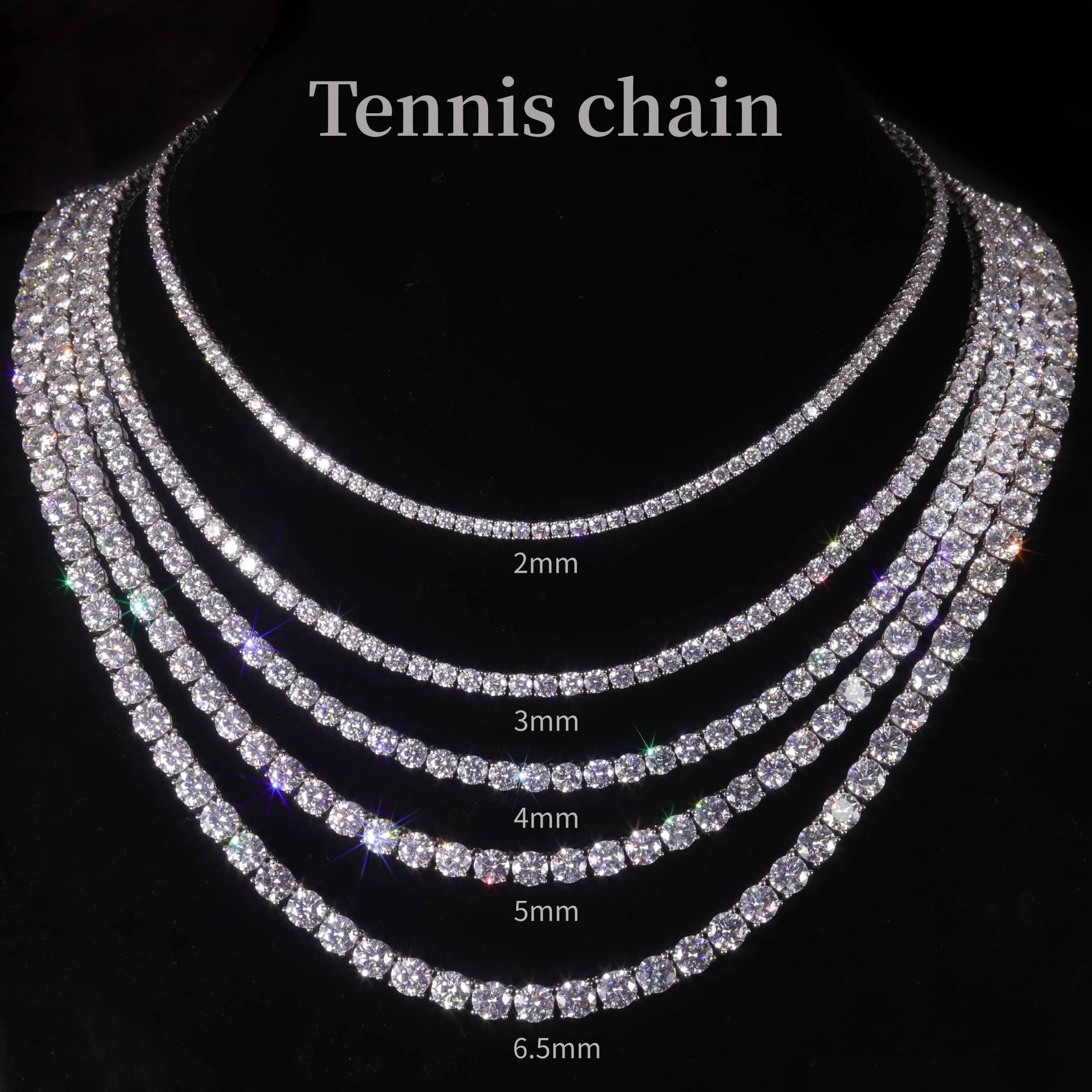 欧米ins莫桑石テニスチェーンD色2/3/4/5/6/6.5mm 925銀ヒップホップは高級感のあるネックレスをはめ込んでいる