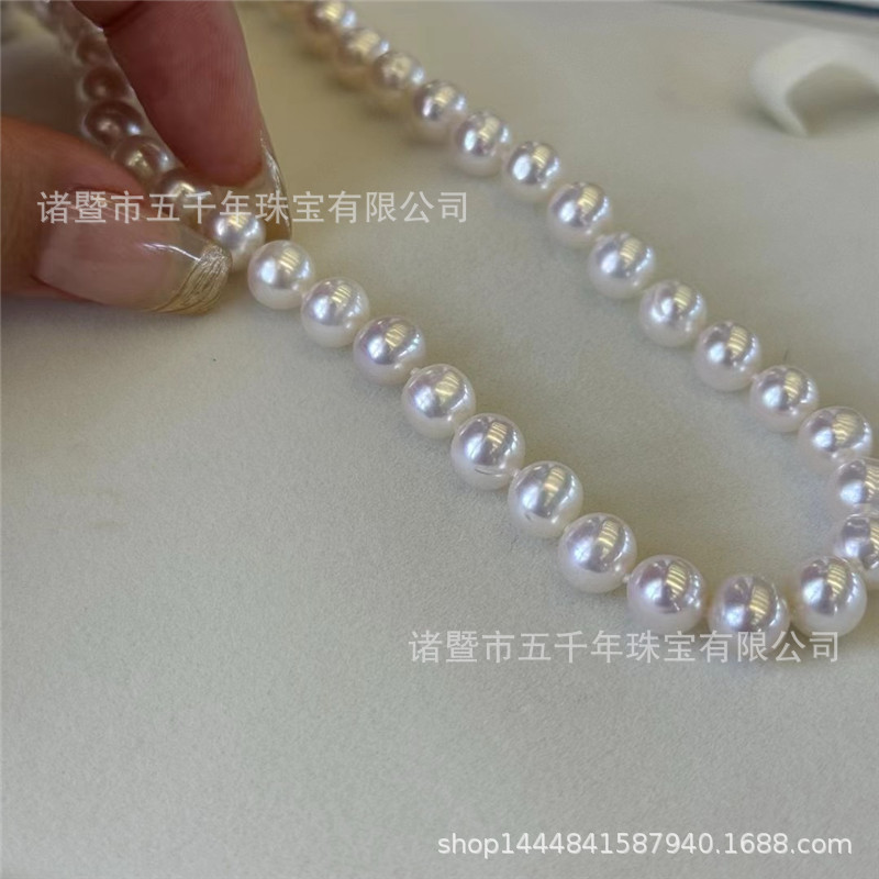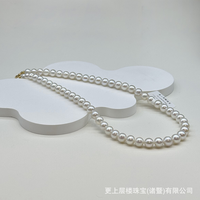 諸暨真珠8-9mm5A極光沢無核ほぼ丸型水真珠ネックレス完成品卸売925銀元宝留め具付き