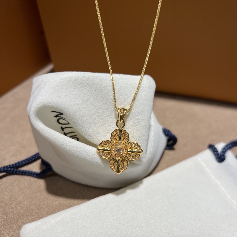 18K ゴールド四つ葉の花ペンダント Au750 カラーゴールドクロスダイヤモンド杵ペンダントファッショナブルで多用途な鎖骨チェーンウォーターシェルゴールド