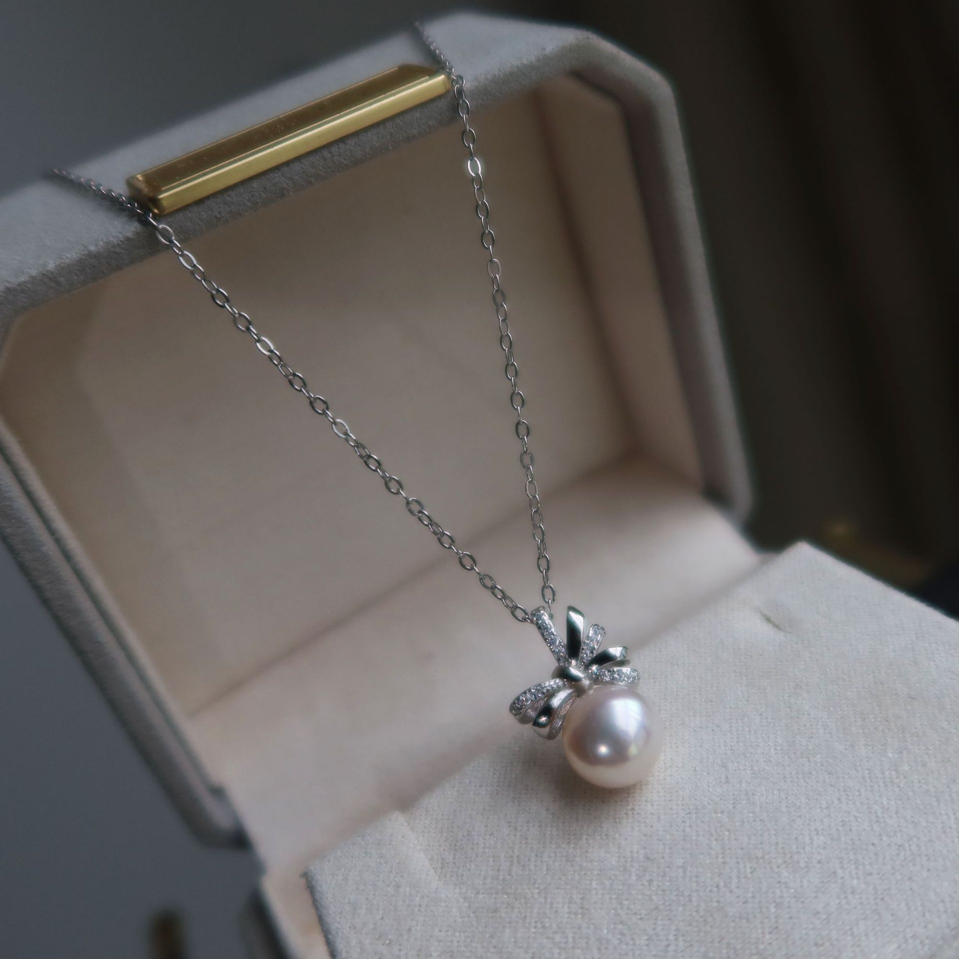 S925純銀バレエ少女リボン蝶ネクタイ天然強光マントー真珠ネックレス小衆デザイン鎖骨鎖