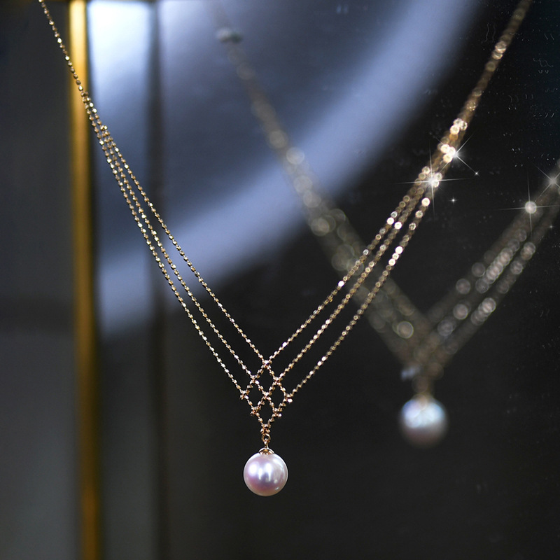 18金星形ネックレス2025年新作レディースライトラグジュアリー高級感天然淡水パールジュエリー