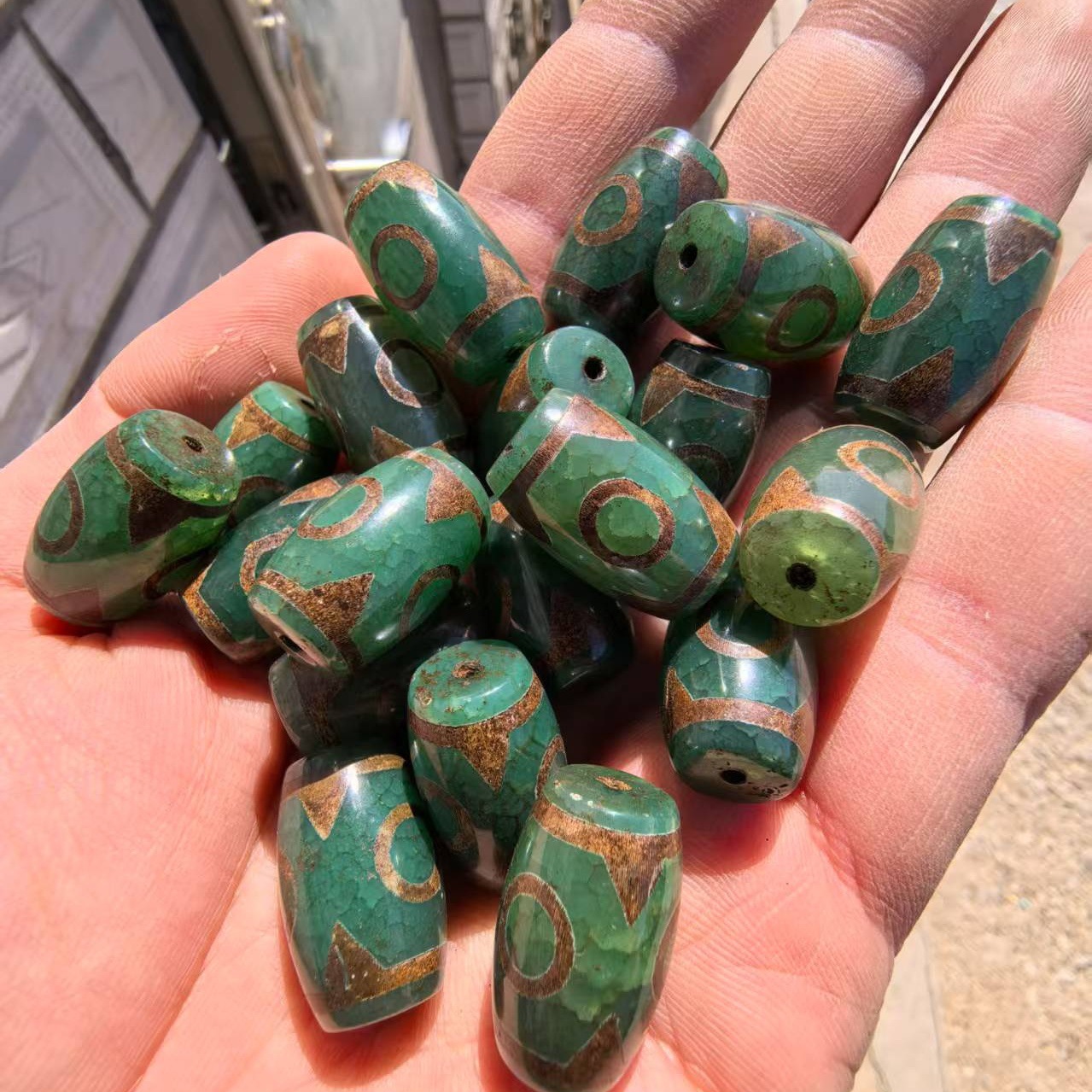 メーカーは天然瑪瑙 15 × 22 ミリメートルチベット高原大麦を供給しています緑の古い三つ目の天珠ルースビーズアクセサリー