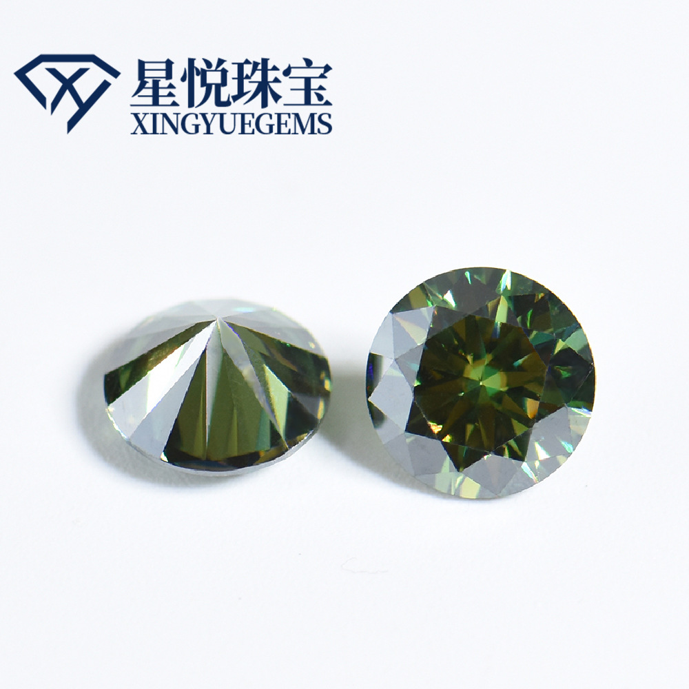 莫桑工場墨緑莫桑石円形八心八矢切工莫桑裸石VVS浄度宝石卸売り