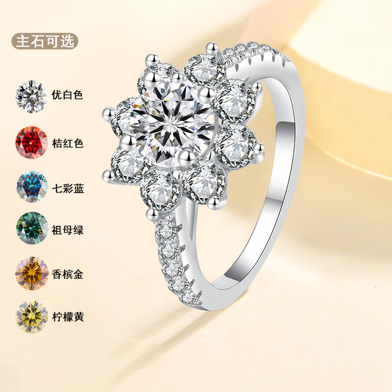 S925 シルバーモアッサナイトリング女性用ひまわりダイヤモンドリング、Kuaishou ライブストリーミング供給、ハートと矢印 8 個付き