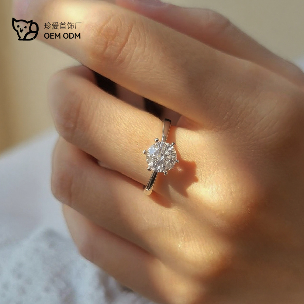 S925純銀モアサナイトダイヤモンドラウンドリング女性用ダイヤモンドリング一カラットリングライブ販売モアサナイト
