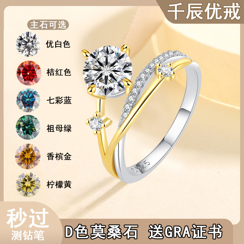 S925純銀1クラモサン石指輪女性四爪星河星紅書結婚指輪を求めて彼女にプレゼントする