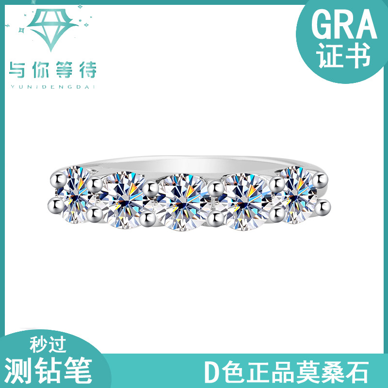 国境を越えた対外貿易S925銀莫桑石五星王女排戒シンプルなファッション莫桑ドリル指輪女工場卸売り