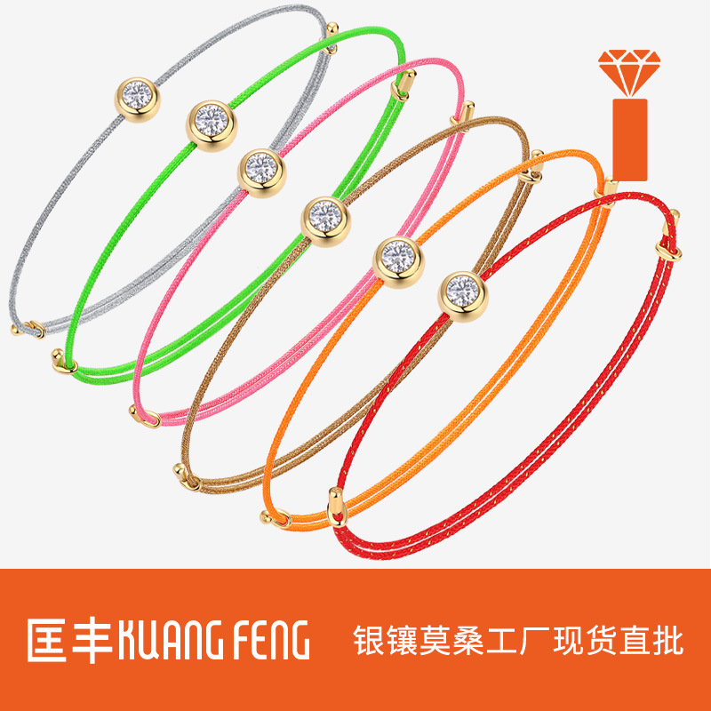 ファッション少女夜光七彩ブレスレットは色落ちしない925純銀莫桑石手縄単珠莫桑ドリルブレスレット