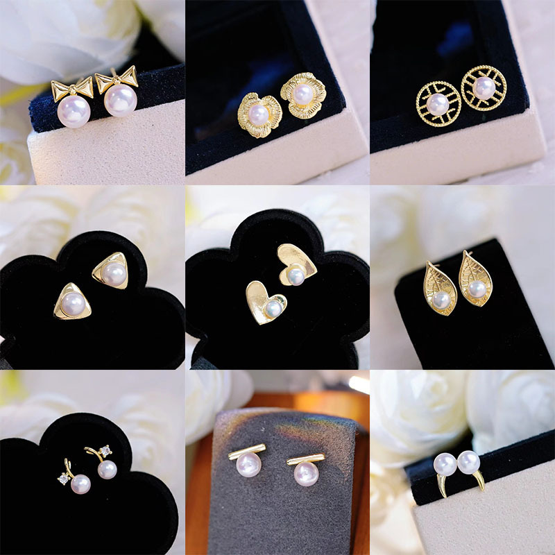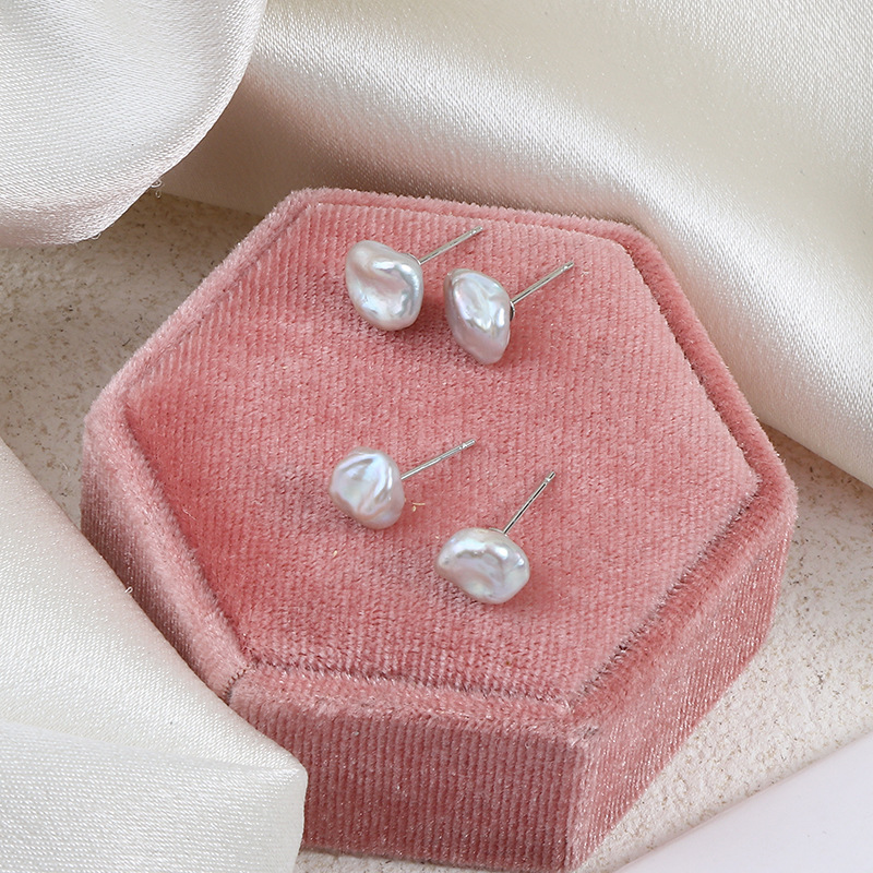 必需品 天然淡水パールピアス 多用途 S925純銀針 パン型パール 工場卸売 5Aグレード
