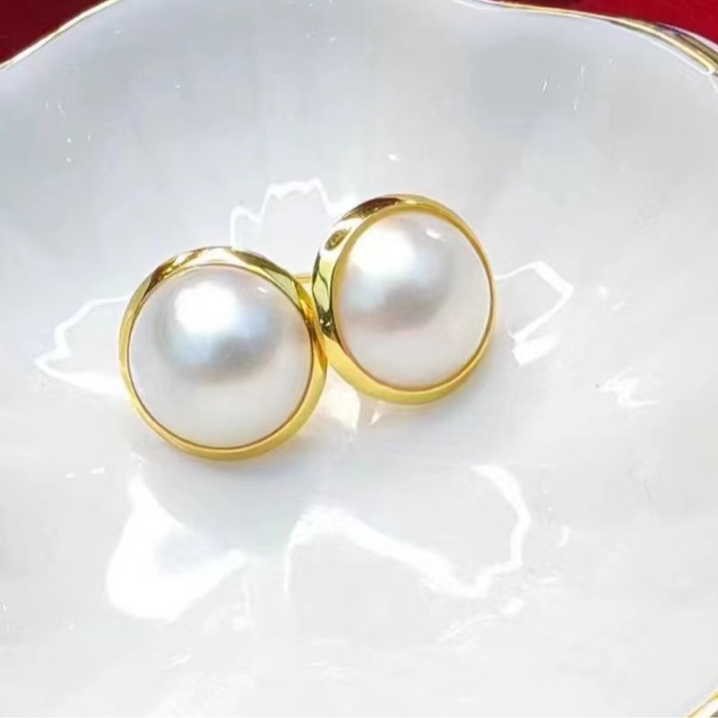 12mm大サイズ天然淡水真珠ピアス女性軽贅沢tyusha博主同金18k金999銀針耳飾り