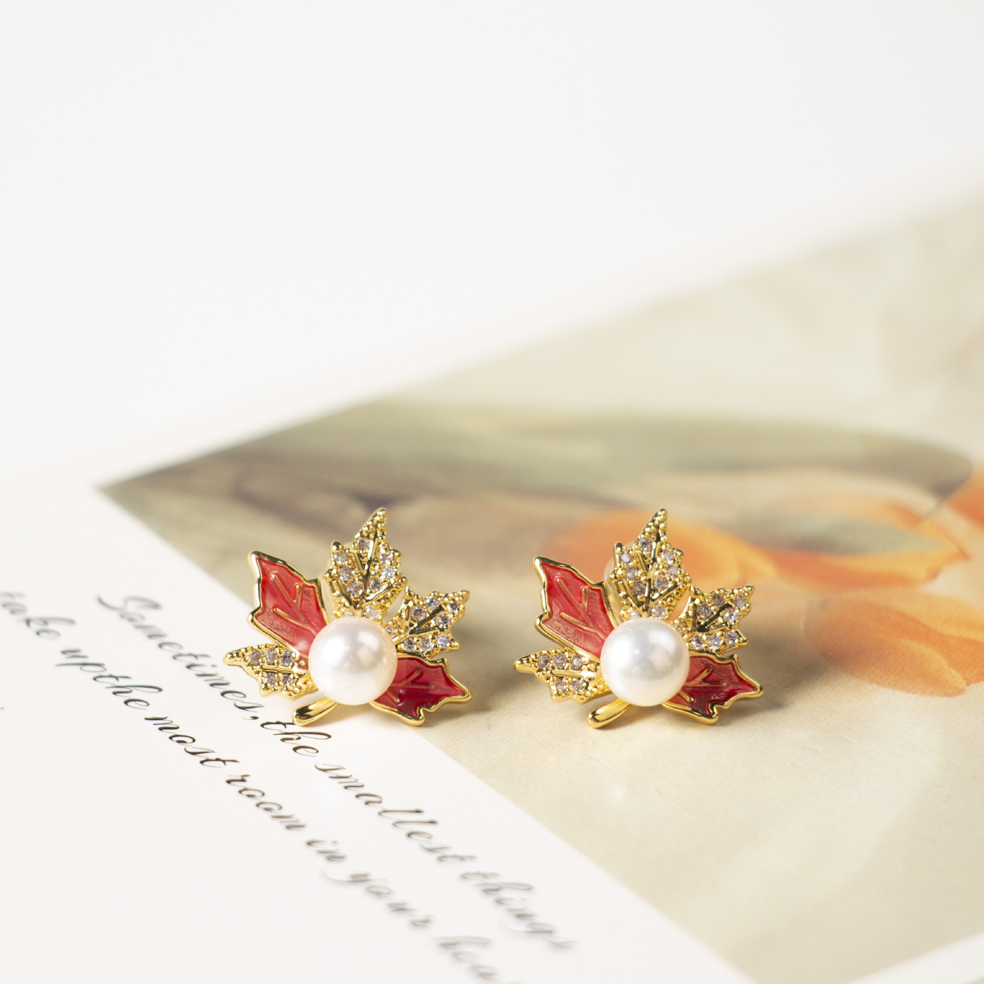 原産地諸及び天然淡水真珠ピアス女性S925銀針ファッション百合小楓葉真珠ピアス