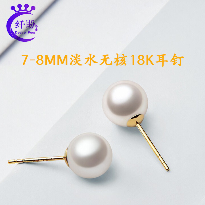 カスタマイズされたリンク卸売カスタマイズされた 7-8 ミリメートル淡水無核真珠のスタッドピアストップグレードの真珠のスタッドピアスはカスタマイズする必要があります