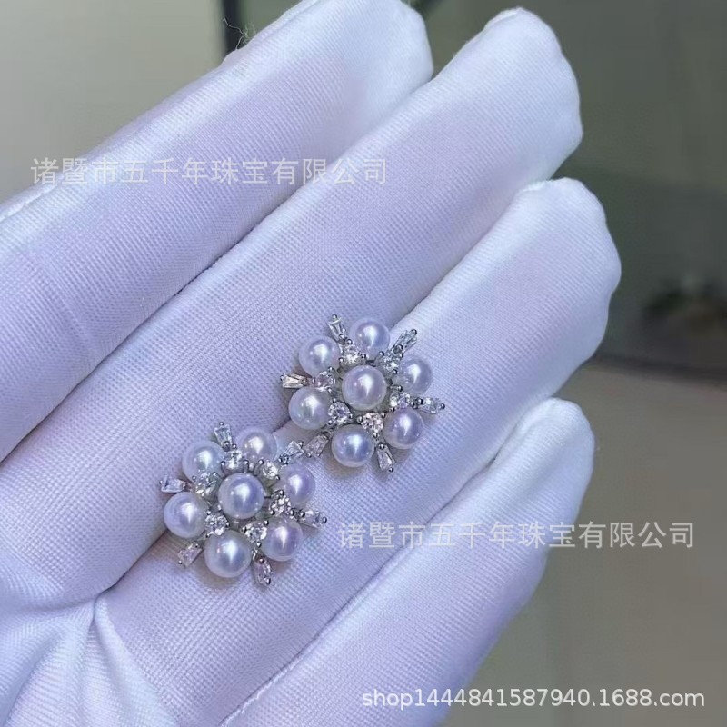 セイコー925銀雪花淡水真珠イヤリング1種類の多珠ピアス正円極光共同購入卸売り