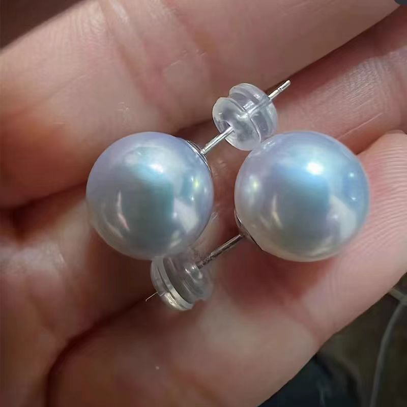 極光天然淡水真真珠百合素釘丸み非扁珠S925銀養耳洞経典スチュワーデスピアス