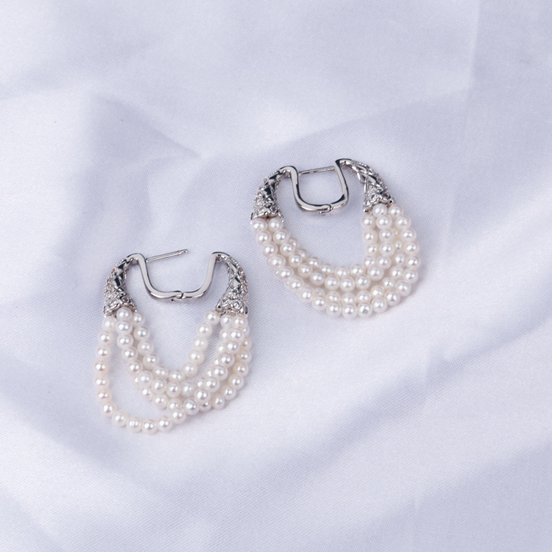 新しいイヤリングパールイヤリング 3-4 メートル高品質淡水多層パールイヤリングレトロイヤリング